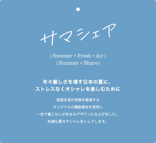 ストレスなく夏のおしゃれが楽しめる「サマシェア」と、悩む声を参考に完成した「完声シリーズ」をまとい、気の向くままに小旅行へ。