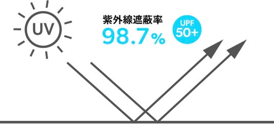UPF50+UVカット率98.7%、UPF50+で日焼けを抑え、日差しによる疲労感を軽減します。