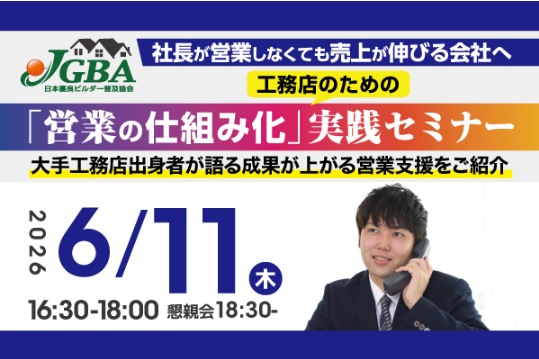 2026年6月11日(木)『社長が営業しなくても売上が伸びる会社へ 工務店のための「営業の仕組み化」実践セミナー』開催決定!