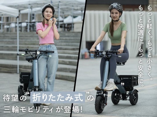 特に2段階折り畳み構造により、持ち運び可能な三輪電動車両として、世界で類を見ないユニークな製品に仕上がっています。