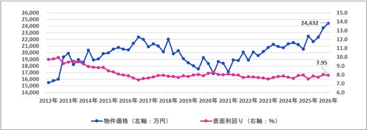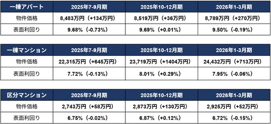 国内最大の不動産投資プラットフォーム「楽待」(https://www.rakumachi.jp/)を運営する楽待株式会社(本社:東京都中央区、東証スタンダード、証券コード:6037)は、同サイトにおける投資用不動産市場調査2026年1月~3月期の結果を公表いたします。