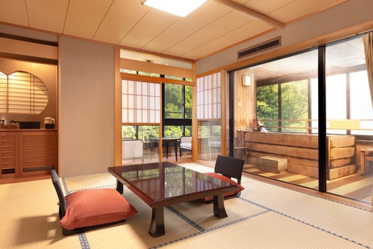 客室は展望風呂付き和室や、シモンズ社製ベッドが人気の和洋室など、旅のスタイルで選べる6タイプ全48室。