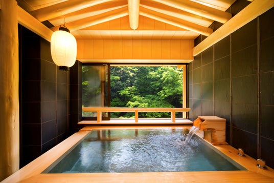 加賀・山中温泉「かがり吉祥亭」真横に渓流が流れる温泉大浴場の露天風呂