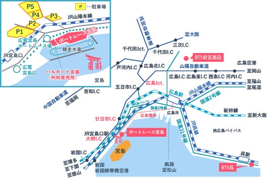ボートレース宮島専用駐車場をご利用の場合、インフォメーションで1,000円分の舟券と駐車券の提示で無料とさせていただきます。