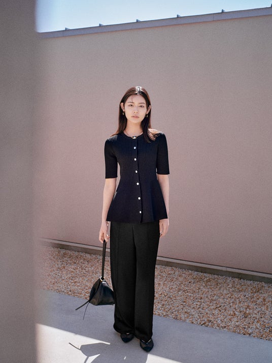 スタイルアップするシルエットと、きちんと見える上質な素材選び。