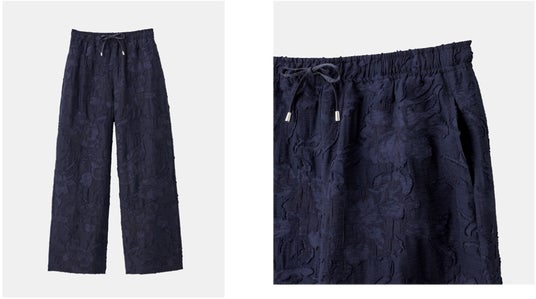 ・商品名:シアージャカードイージーパンツ (4月13日(月)発売) ・カラー:ブラック、ネイビー、ホワイト ・金額:¥12,000(税込)