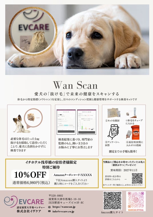 愛⽝の体⽑からWell-beingを可視化|滋賀大発ベンチャー企業株式会社イヴケア、 ドッグフレンドリーホテル「イチホテル浅草橋」と愛犬のWell-being向上に向けた共同プロジェクトを開始