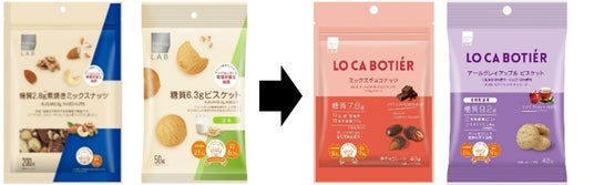 ブランド名「ロカボーティエ(LOCABOTIER)」は、「ロカボ(適正糖質)」と「ボーティエ(美)」を組み合わせた造語で、美と健康※の両立を目指す新感覚のロカボおやつシリーズとしてリニューアルします。