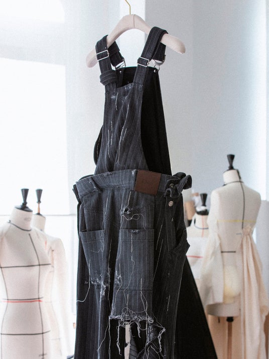 エセル・ケインは、ブラックのデニムピンストライプのオーバーオールに、ブラックのコットンTシャツ、レザーブーツを合わせて登場しました。
