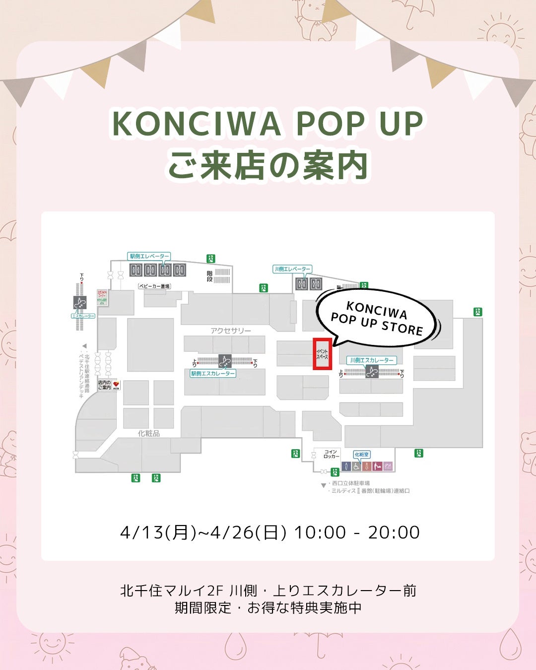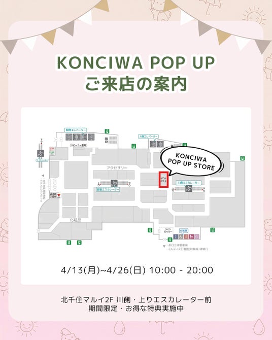 KONCIWA株式会社(本社:東京都本郷区)は、2026年4月13日(月)から4月26日(日)までの期間、北千住マルイ 2Fにて、期間限定ポップアップストアを開催いたします。