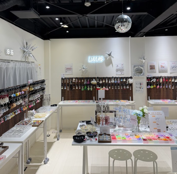 店内には100種類以上のパーツが並び、「とにかく可愛い」を基準に厳選されたアイテムを自由に組み合わせることで、世界にひとつだけのオリジナルアイテムを制作することができます。