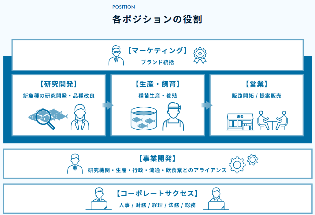 「世界一旨い魚を創り、届ける」という企業理念の実現に向けて、新しい仲間を募集しています。当社の企業理念に共感し、事業に関心をお持ちの方は、ぜひカジュアル面談にご応募ください!