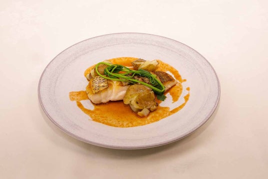 鯛のポワレ 新ジャガと春せり添え 甘海老のビスクソース