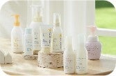 低刺激のスキンケアラインを中心に、通常ラインのほか、それぞれの肌特性にあわせたマタニティーライン、ベビーライン、キッズライン、敏感肌フェイスライン、ボディ&ヘアラインなど展開しています。