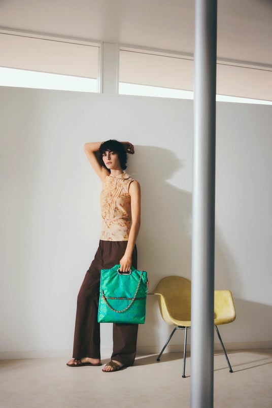 アトリエシリーズのアイコニックなスタイルとして人気のバンダナ柄チェーントートバッグ。今シーズンは、春夏の陽気なムードを演出する繊細かつ華やかなカラーリングのバンダナ柄。バッグの底面にはクッションが入っているので型崩れせずお持ちいただけます。500mlのボトルが入るスモールサイズと、A4やノートPCなど大容量収納できるラージサイズの2サイズ展開。チェーンストラップは取り外し可能で、手持ち、肩掛け、斜めがけでもご使用いただけます。