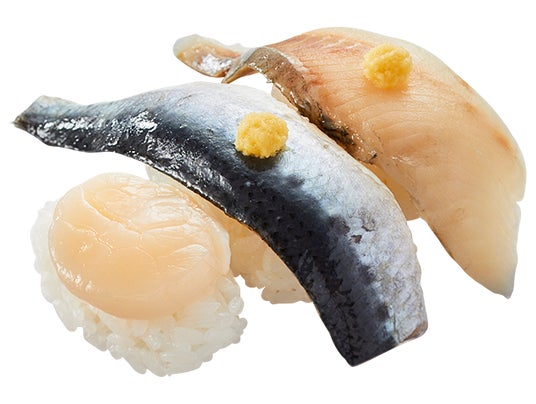 ほたて・北釧〆いわし・にしん、贅沢3貫を一皿でお楽しみください。