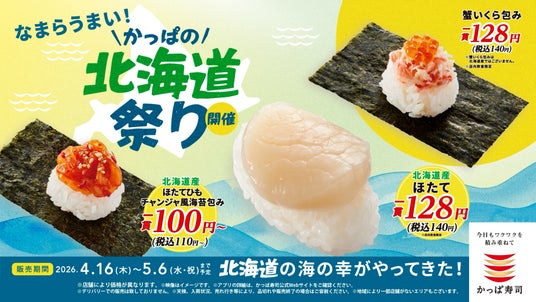 コロワイドグループのかっぱ寿司(カッパ・クリエイト(株) 本社:神奈川県横浜市、代表取締役社長:山角豪)は、2026年4月16日(木)~5月6日(水)の期間、「かっぱの北海道祭り」をかっぱ寿司全店にて開催いたします。