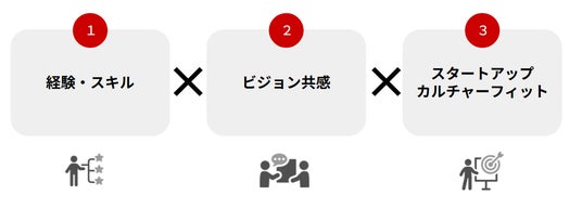 スタートアップで活躍する要素左記画像が、スタートアップで活躍する要素です。今回のプログラムの対象者は、1.経験・スキルを持つ方なので、2.ビジョン共感、3.カルチャーフィットをテーマに講座を用意しました。