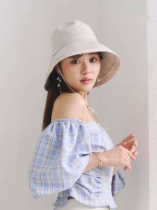 顔まわりをしっかりと覆うデザインで、夏の紫外線対策を叶えるツバ広ハット。