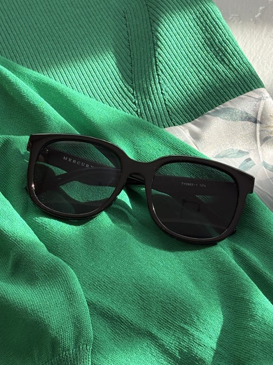 ぽってりとした丸みのあるフレームで、柔らかい印象のファッショングラス。