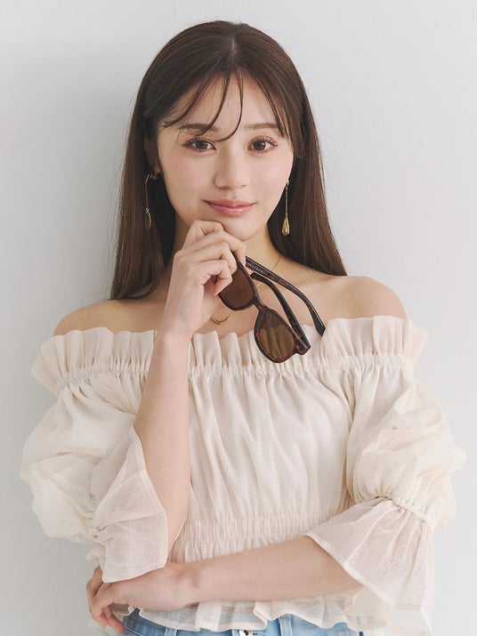 華奢なデザインなので顔まわりになじみやすく、さりげないアクセントとして夏のスタイリングをアップデートします。