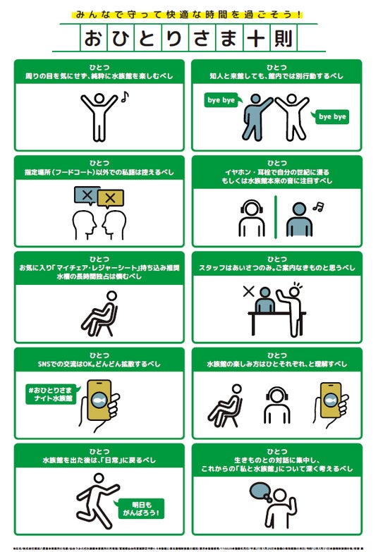 このイベントを心ゆくまでお楽しみいただけるよう設定したルール「おひとりさま十則」や、キャンドル型ライトの装飾などの限定コンテンツにより、「周りの目を気にせずに、ひとりで水族館を楽しめる」と大変好評いただき、今回で15回目の開催です。