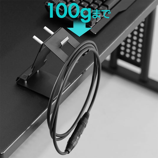 繊細なイヤーピースを埃や汚れから守るため、フックを前方に突き出したオフセット設計を採用しました。イヤホン本体が支柱やデスク天板、他のケーブル類に直接触れないよう配慮されています。耳に直接入れるデリケートなデバイスだからこそ、衛生面へのこだわりは不可欠です。浮かせて保管することで、デスク上のスペースを有効活用しつつ、常にクリーンな状態で次のゲームプレイや作業に臨むことが可能です。
