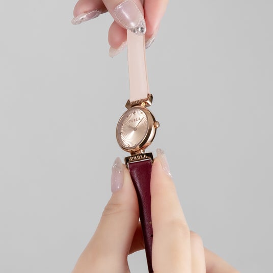 FURLA(フルラ)の腕時計は、ブランドの持つ高いクリエイティビティや品質、細部へのこだわりが詰まっています。バッグと同じく、素材の特性に合わせて最適な仕上げが施され、それらが相まって一目で“フルラ・デザイン”とわかる調和を生み出しています。