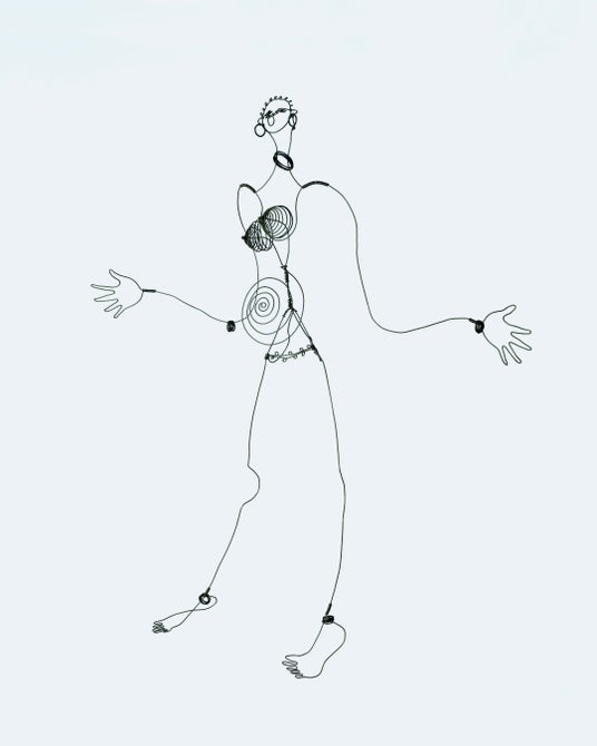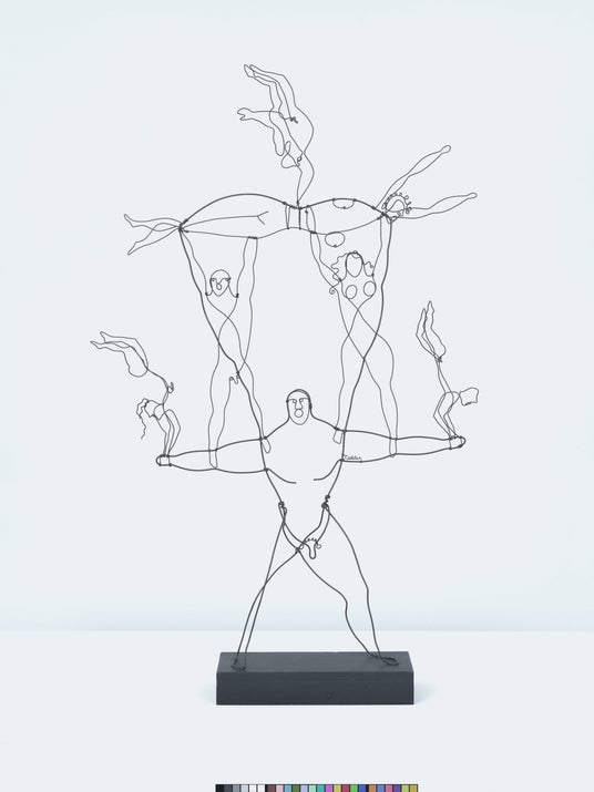 1920 年代半ば、カルダーは《Cirque Calder》と並行して針金による彫刻に取り組み、自ら「三次元の線描」と呼ぶ独自の表現を切り開いた。彫刻の量塊を省き、線を空間へと解き放つこの手法は当時きわめて斬新で、批評家たちはそれを既存のジャンルに容易に収めることができなかった。最初期の作例には《Josephine Baker IV》も含まれ、軽やかで柔軟な素材は偶然の動きすら作品に取り込みうる。観察の鋭さと手技の巧みさによって、カルダーはデッサンを複数の次元で展開した。