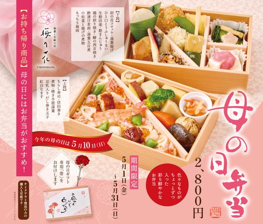 株式会社 梅の花サービス(本社:福岡県久留米市、代表取締役:野田安秀)が運営する「湯葉と豆腐の店 梅の花」では、2026年5月1日(金)から5月31日(日)まで「母の日弁当」を販売いたします。