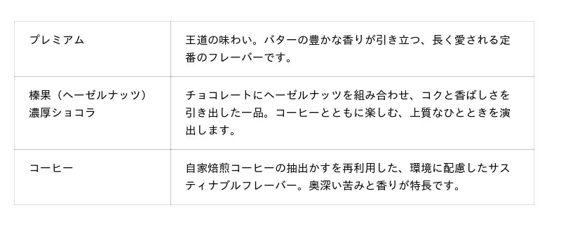 本商品は、既にご好評をいただいている「Petit Bon Canele(プティ ボン カヌレ)」の開発・提供で得た知見を活かし、「製造面での安定性」と「食べやすさの両立」を目指して開発しました。現場で無理なく提供できるオペレーションと、毎日でも食べたくなるような「飽きのこないクオリティ」を重視しています。本格的なスイーツや一杯の自家焙煎コーヒーやサスティナブルな取り組みを通じて、組織や立場を超えたコミュニケーションの創出を目指しています。