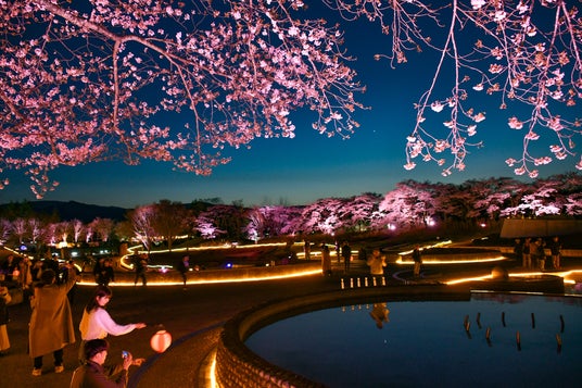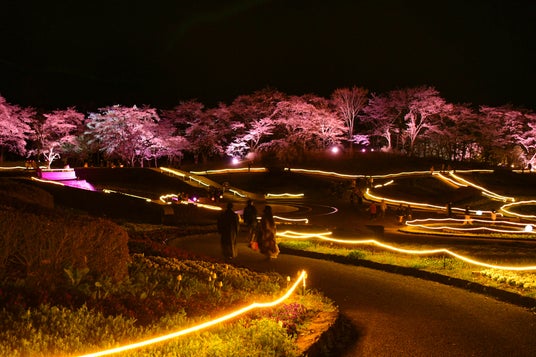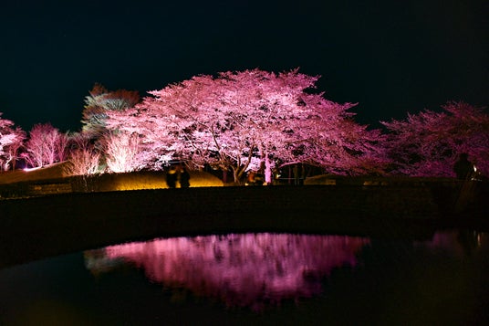 夜桜ライトアップ『みちのく花明かり』開催中(国営みちのく杜の湖畔公園)