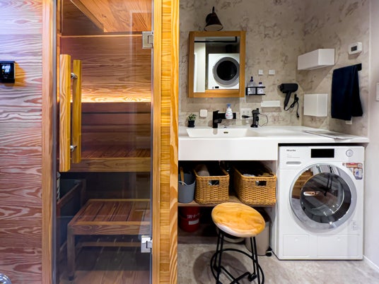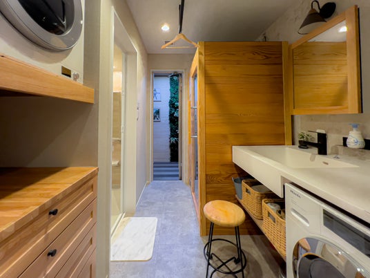 SK Laboは、サウナ室だけを切り取るのではなく、洗面脱衣所・浴室・内気浴スペース・リビング・キッチン・デッキを含む生活空間全体をひとつの流れとして設計。「家に帰ってサウナに入り、シャワーを浴びて、休憩して、ご飯をつくる」という暮らしのひとこまを、そのままラボで追体験できます。