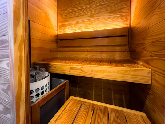 Vanwaves開発・国産製造の電気サウナストーブ「IRORI」と、木製箱型サウナIRORIプレミアム「NUBO」を実機設置。サーモウッドパイン材の本格サウナ室で、着衣のままセルフロウリュをお試しいただけます。
