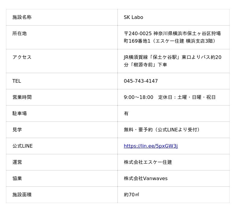 家庭用サウナブランド「IESAUNA」を展開する株式会社Vanwaves(本社:千葉県船橋市、代表取締役:深田 渚央)は、販売パートナーである株式会社エスケー住建(本社:埼玉県川口市、代表取締役社長:田村 清治)と協業し、神奈川県横浜市保土ヶ谷区に暮らし体感施設「SK Labo」を2026年4月1日にオープンしました。