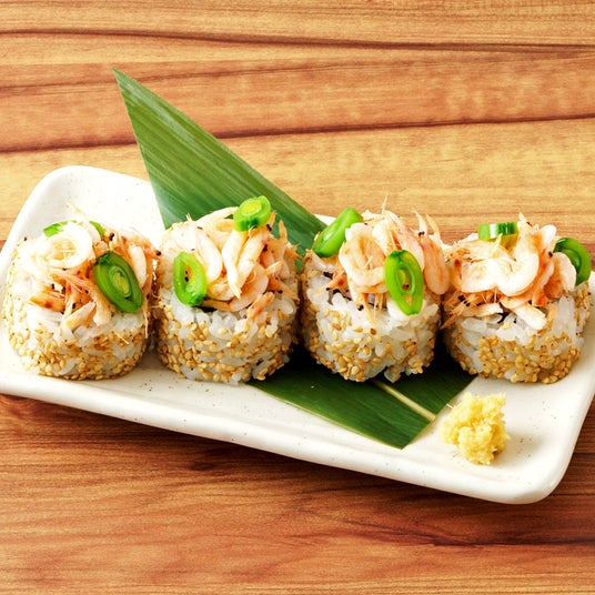 【見た目も華やか】 新鮮な桜えびを贅沢に盛り付けた、おつまみ感覚で楽しめる「つまめる寿司」。