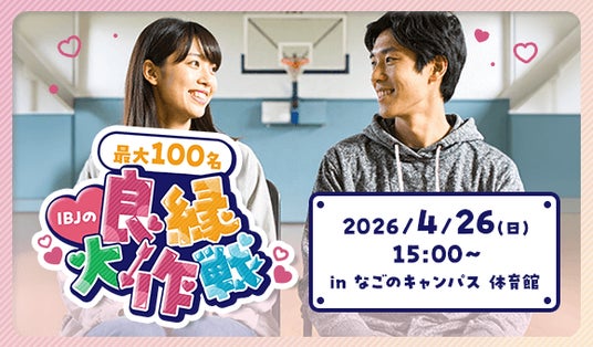 国内最多*¹の成婚数を誇る株式会社IBJ(代表取締役社長:土谷 健次郎、本社:東京都新宿区、東証プライム:6071、以下「IBJ」)が運営する婚活パーティーサービス「IBJ Matching」は、2026年4月26日(日)、名古屋の学校跡地を活用した施設「なごのキャンパス」にて、最大100名規模の婚活イベント「良縁大作戦」を開催します。本イベントでは、全参加者と1対1で会話を繋ぐ“回転寿司形式”のシステムを導入。短時間で多くの方と対面したいという「タイパ(タイムパフォーマンス)重視」のニーズに応え、効率的かつ確実な“リアルの出会い”を提供します。