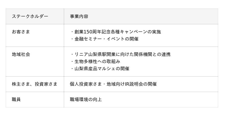 当行は創業150周年という大きな節目の年を迎えるにあたり、これまで支えてくださったステークホルダーの皆さまへ感謝するとともに、未来への成長投資の機会として、記念事業を実施します。