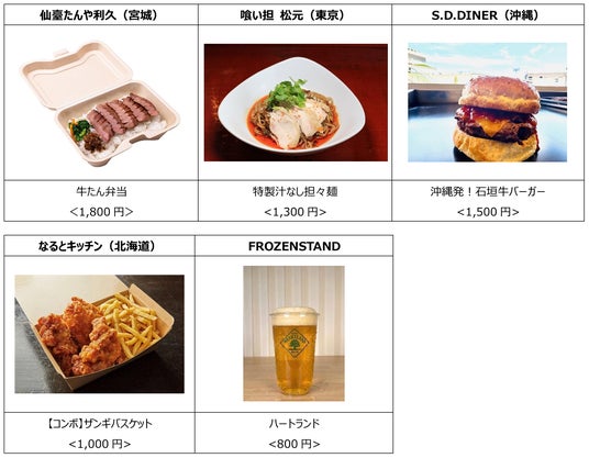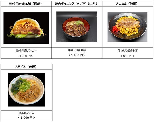 店舗 :下表のとおり ※代表メニューを記載。それぞれ画像はイメージです。