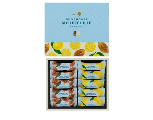 今年も早い時期からの猛暑が予想されており、GW や夏の帰省シーズンに向けて「暑い日でも常温で持ち運べる手土産」へのニーズが高まっています 。本商品は「ジャパン・フード・セレクション」にて最高位グランプリ受賞歴のある当社のロングセラー商品「ミルフィーユ」の製法をベースに地球温暖化による気温上昇対策をふまえた新・夏手土産商品として開発しました。暑い気温に強いシュガーコートを施すことで、チョコレート特有の「溶けやすさ」という課題をクリアし、常温での持ち運びを可能にしています。144 層のパイとクリームの絶妙な食感に加え、夏にぴったりのレモンとカカオのさわやかな味わいが特徴です。冷やすとシュガーコートのシャリシャリとした食感に変化しさらに美味しくお召し上がりいただけます。