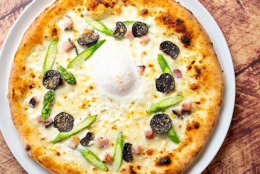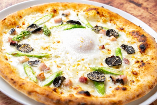 北海道産アスパラと「下川六〇酵素卵」のトリュフビスマルク ピッツァ:1,969円(税込)~