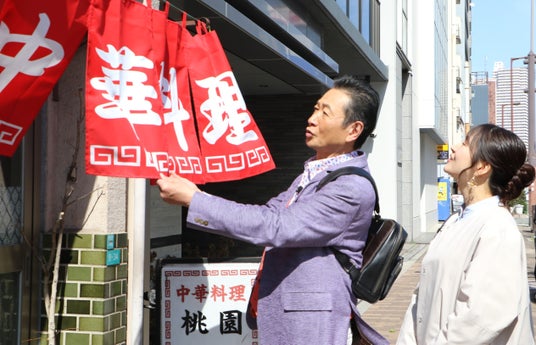 お腹が空いてきたふたりは【中華料理 桃園(とうえん)】へ。創業54年、昭和の雰囲気漂う町中華で、お昼時には会社員の方から大人気です。