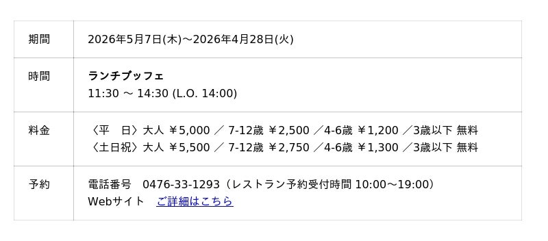 ANAクラウンプラザホテル成田(成田市堀之内 総支配人 ダヴィデ・ザナルディ)では、5月7日(木)から6月30日(月)の2か月間限定で「Buono! イタリアーノ・ランチ&ディナーブッフェ」を 1F レストランカフェ「セレース」にて開催いたします。