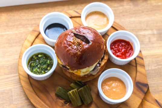 |店主よりコメント「5周年のバーガーに添えた5種のソースは、これまでルデラでご提供してきた味わいを、一度に楽しんでいただけるようにという想いから生まれました。それぞれのソースには、その時々にご来店いただいたお客様との記憶や、試行錯誤の積み重ねが詰まっています。