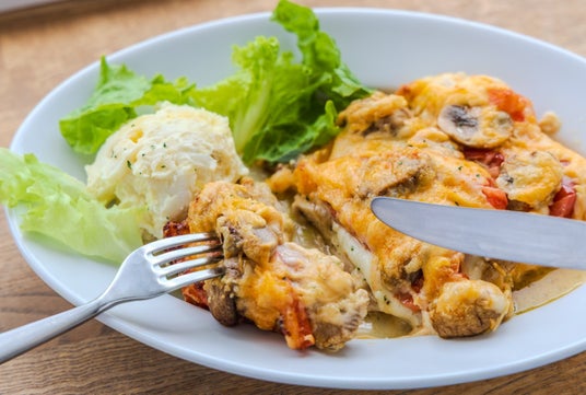 3種のチーズをたっぷり使用し、香ばしく焼き上げた鶏もも肉にコクと旨味をプラス。自家製ポテトサラダを添えて提供します。
