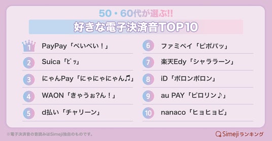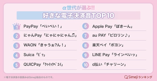 調査名:Simejiランキング「好きな電子決済音TOP10」