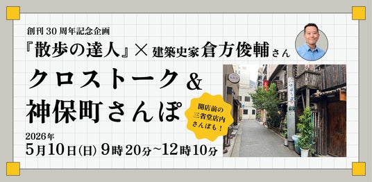 株式会社交通新聞社(本社:東京都千代田区、代表取締役社長:伊藤嘉道)が発行する月刊誌『散歩の達人』は、「『散歩の達人』×建築史家・倉方俊輔さん クロストーク&神保町さんぽ」を5月10日(日)に開催します(主催:「三省堂書店 めくる塾」)。