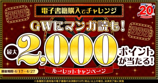 電子書籍55円(税込)以上の決済でポイントやクーポンが当たるルーレット♪ 最大2,000ポイント当選のチャンス!