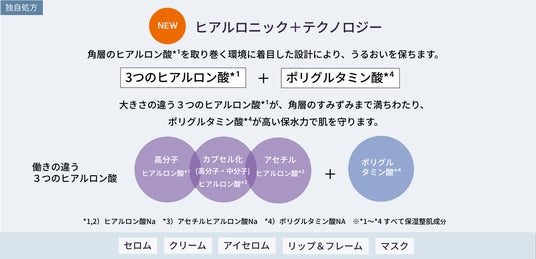 ”ヒアルロニック+テクノロジー”は、肌の角層に存在するヒアルロン酸を取り巻く“うるおい環境”に着目した保湿設計。