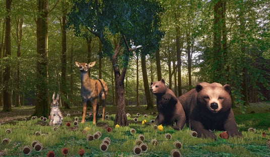 GWに小さなお子様を対象に、動物たちに囲まれながら、落ちたどんぐりをたくさん拾ってカゴに入れるVRゲームを実施します。コントローラーを使用せず、臨場感のある映像の中で手で拾う仕草だけで遊べるため、だれでも簡単に体験ができます。